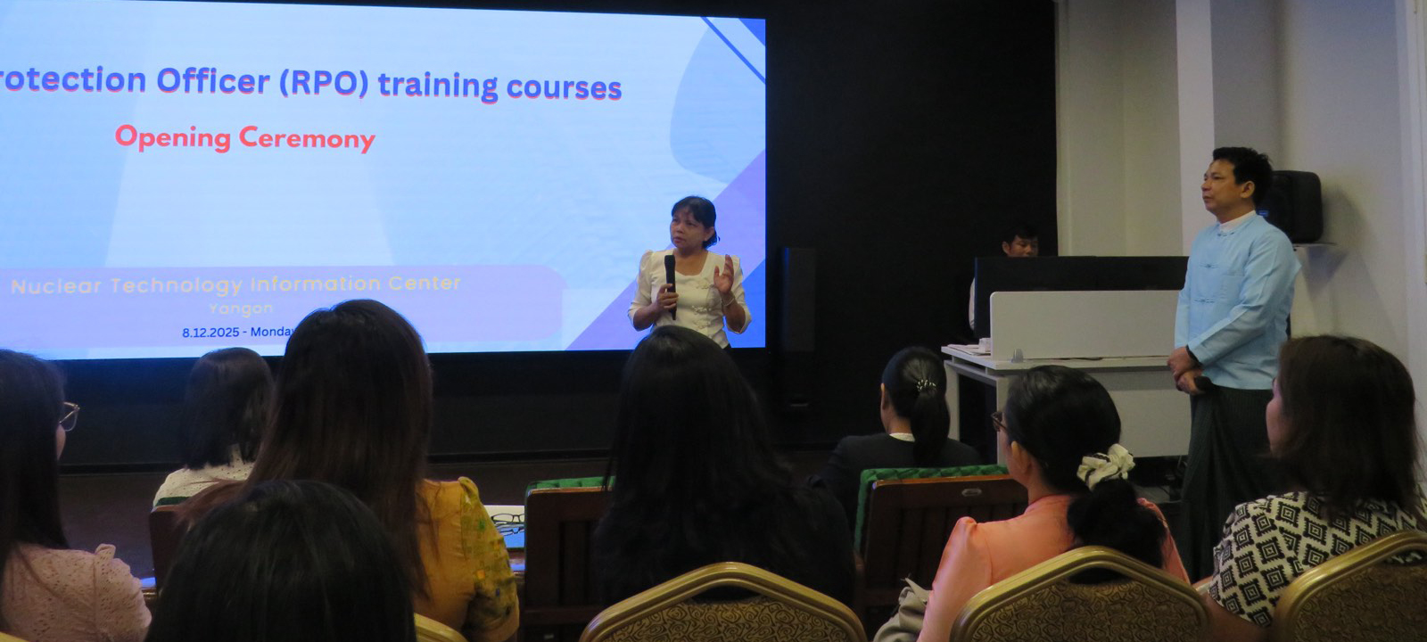 ဓာတ်ရောင်ခြည်ကာကွယ်ရေးဆိုင်ရာ အခြေခံသဘောတရားများကို သိရှိနားလည်ပြီး ဓာတ်ရောင်ခြည်ထွက်ရှိသောလုပ်ငန်းခွင်တွင် ဓာတ်ရောင်ခြည်ဖြင့်ထိတွေ့လုပ်ဆောင်နေရသော ဓာတ်ရောင်ခြည်လုပ်သားများ ဓာတ်ရောင်ခြည်ဘေးအန္တရာယ် ကင်းရှင်းစေရန်၊ ပြည်သူလူထု အား မလိုလားအပ်သည့် ဓာတ်ရောင်ခြည်သင့်မှု မရှိစေရေးအတွက် လိုအပ်သောစည်းမျဉ်း၊ စည်းကမ်းများကို သိရှိလိုက်နာဆောင်ရွက်နိုင်စေရန်နှင့် ဓာတ်ရောင်ခြည် နည်းပညာ အသုံးပြု လုပ်ငန်းများဆောင်ရွက်နေသည့် အဖွဲ့အစည်းများတွင် ဓာတ်ရောင်ခြည် ကာကွယ်ရေးအရာရှိ အဖြစ်ဆောင်ရွက်နိုင်ရေးအတွက် ဓာတ်ရောင်ခြည်ကာကွယ်ရေးဆိုင်ရာ အသိပညာများ လေ့ကျင့်သင်ကြားမွေးထုတ်ပေးရန် Radiation Protection Officer Training Course သင်တန်းကို လှိုင်မြို့နယ်ရှိ နျူကလီးယားနည်းပညာ သတင်းအချက်အလက် စင်တာ တွင် (၈-၁၂-၂၀၂၅) ရက်နေ့မှ (၁၈-၁၂-၂၀၂၅)အထိ ကျင်းပပြုလုပ်ခဲ့ရာ အဆိုပါ သင်တန်းသို့ ကျန်းမာရေးဝန်ကြီးဌာနနှင့် အဏုမြူစွမ်းအင်ဦးစီးဌာနတို့မှ သင်တန်းသား၊ သင်တန်းသူ (၁၉)ဦး တို့တက်ရောက်ကြပါသည်။