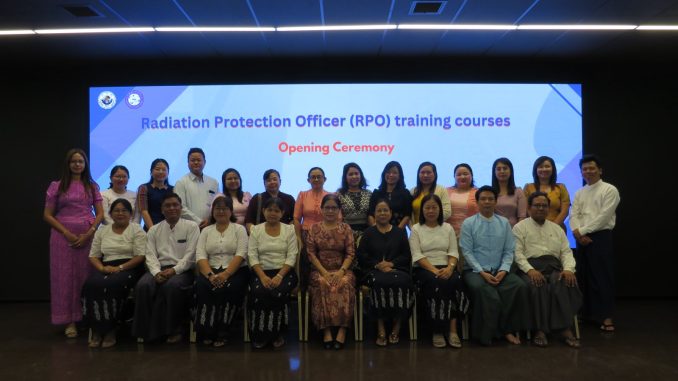 ဓာတ်ရောင်ခြည်ကာကွယ်ရေးဆိုင်ရာ အခြေခံသဘောတရားများကို သိရှိနားလည်ပြီး ဓာတ်ရောင်ခြည်ထွက်ရှိသောလုပ်ငန်းခွင်တွင် ဓာတ်ရောင်ခြည်ဖြင့်ထိတွေ့လုပ်ဆောင်နေရသော ဓာတ်ရောင်ခြည်လုပ်သားများ ဓာတ်ရောင်ခြည်ဘေးအန္တရာယ် ကင်းရှင်းစေရန်၊ ပြည်သူလူထု အား မလိုလားအပ်သည့် ဓာတ်ရောင်ခြည်သင့်မှု မရှိစေရေးအတွက် လိုအပ်သောစည်းမျဉ်း၊ စည်းကမ်းများကို သိရှိလိုက်နာဆောင်ရွက်နိုင်စေရန်နှင့် ဓာတ်ရောင်ခြည် နည်းပညာ အသုံးပြု လုပ်ငန်းများဆောင်ရွက်နေသည့် အဖွဲ့အစည်းများတွင် ဓာတ်ရောင်ခြည် ကာကွယ်ရေးအရာရှိ အဖြစ်ဆောင်ရွက်နိုင်ရေးအတွက် ဓာတ်ရောင်ခြည်ကာကွယ်ရေးဆိုင်ရာ အသိပညာများ လေ့ကျင့်သင်ကြားမွေးထုတ်ပေးရန် Radiation Protection Officer Training Course သင်တန်းကို လှိုင်မြို့နယ်ရှိ နျူကလီးယားနည်းပညာ သတင်းအချက်အလက် စင်တာ တွင် (၈-၁၂-၂၀၂၅) ရက်နေ့မှ (၁၈-၁၂-၂၀၂၅)အထိ ကျင်းပပြုလုပ်ခဲ့ရာ အဆိုပါ သင်တန်းသို့ ကျန်းမာရေးဝန်ကြီးဌာနနှင့် အဏုမြူစွမ်းအင်ဦးစီးဌာနတို့မှ သင်တန်းသား၊ သင်တန်းသူ (၁၉)ဦး တို့တက်ရောက်ကြပါသည်။